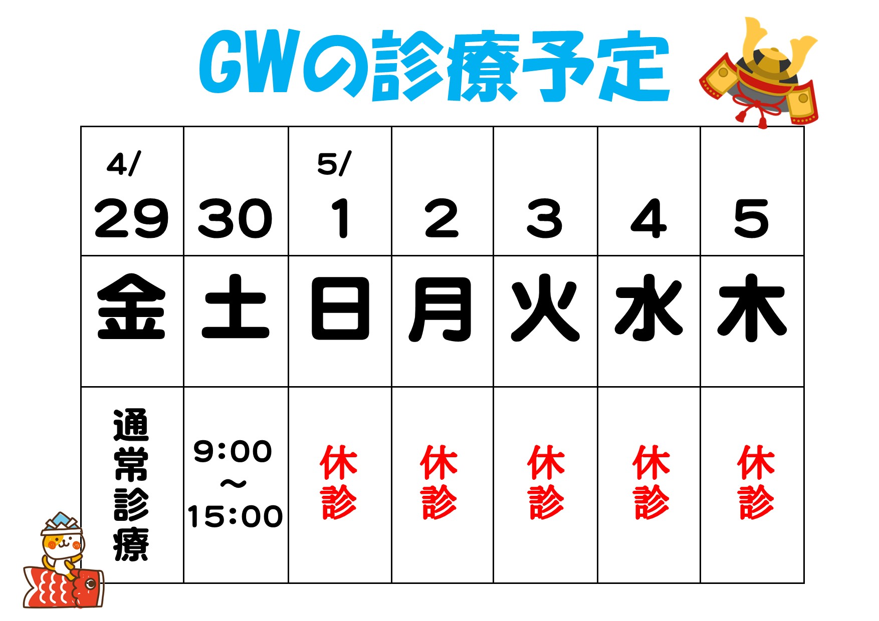 今回は当院もお休みをいただくのでスタッフそれぞれがリフレッシュし、お休み明けは元気な姿をお見せできると思います。