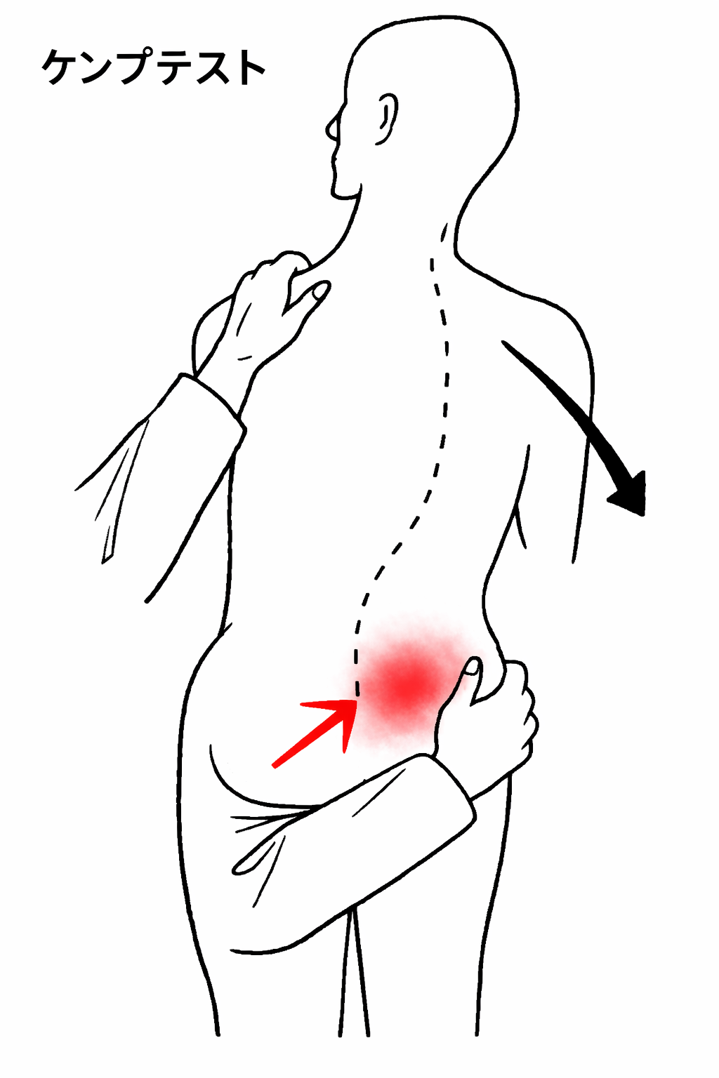 ①ケンプテスト(腰を反らす、捻る動作が痛い)陽性