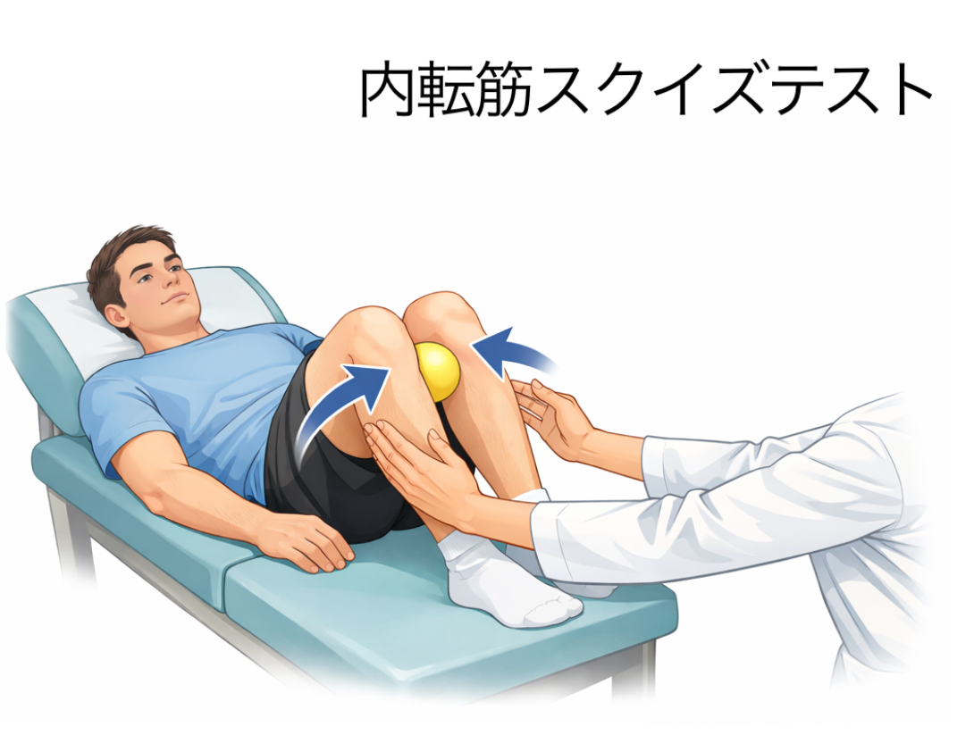 ⑤内転筋スクイズテスト:陽性
