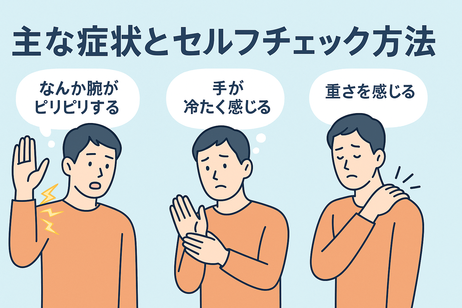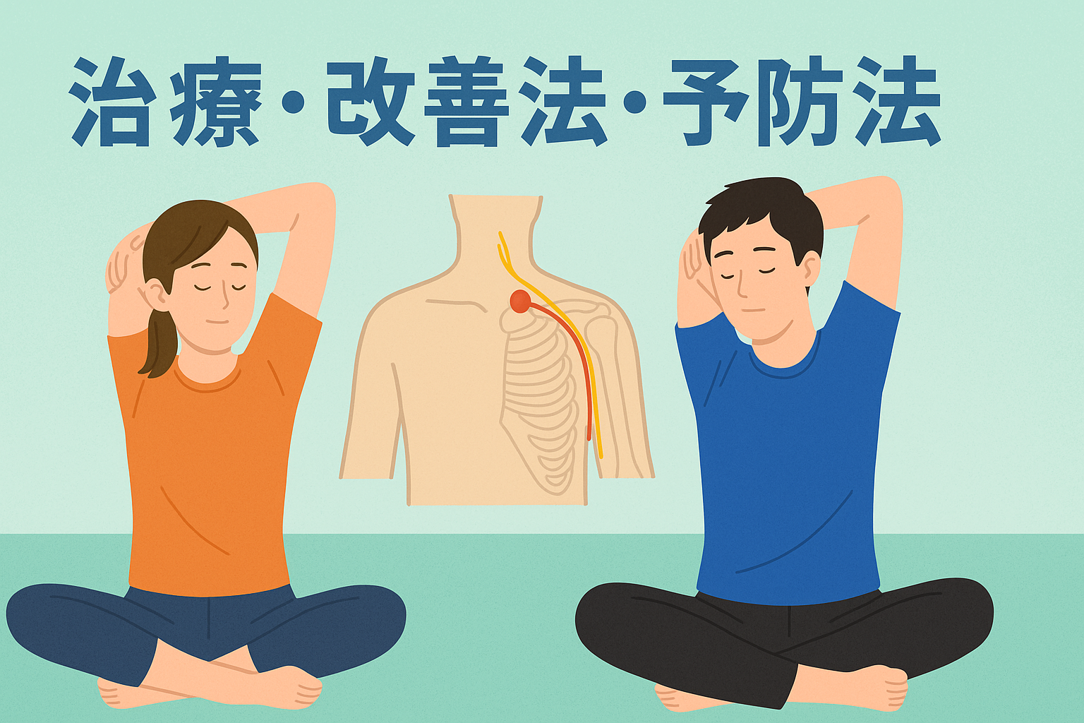 腕や手のしびれ、脱力感、冷感などが続く方へ、胸郭出口症候群の原因・主な症状・診断法・セルフケア・治療法をわかりやすく解説します。