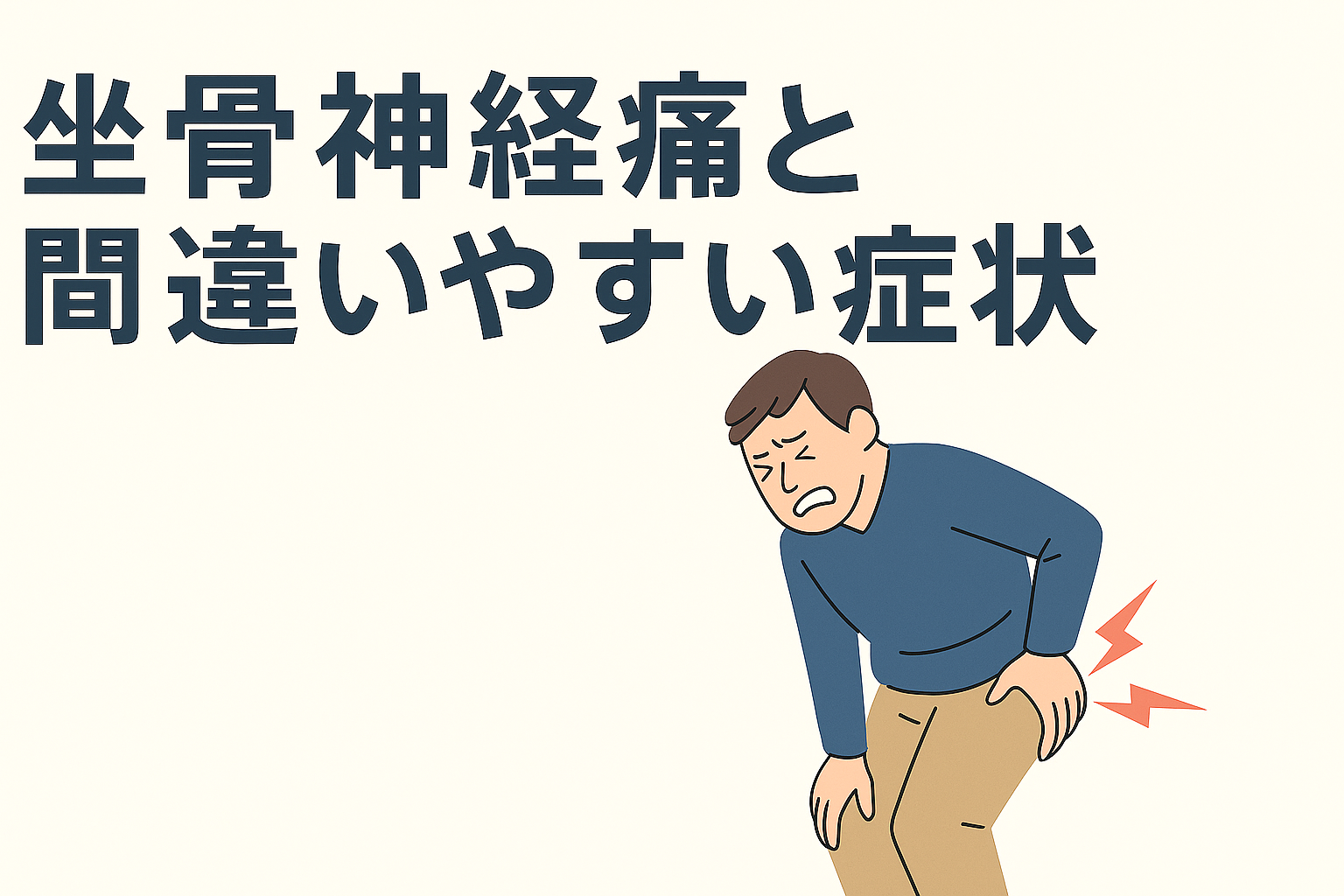 例えば「ただおしりだけ痛い」「座ると悪化する」「脚の特定の動きで出る」というパターンは、坐骨神経痛そのものではなく、上記のような別原因である可能性も考えられると言われています。