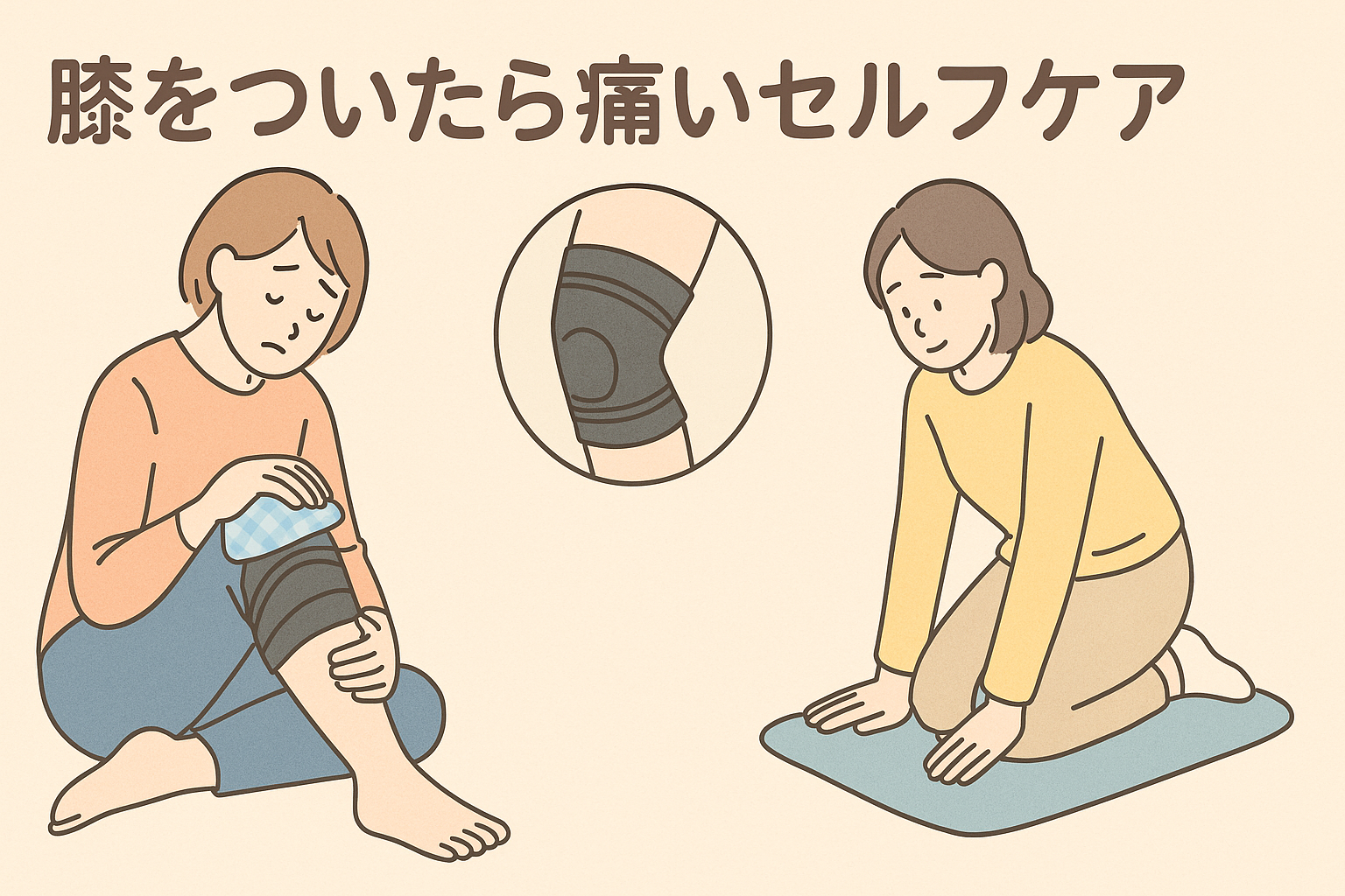 ただし「膝をついたら痛い」という症状が長く続く・腫れが引かない・動きが極端に制限される場合には、自己ケアだけで無理せず専門機関への来院をおすすめします。