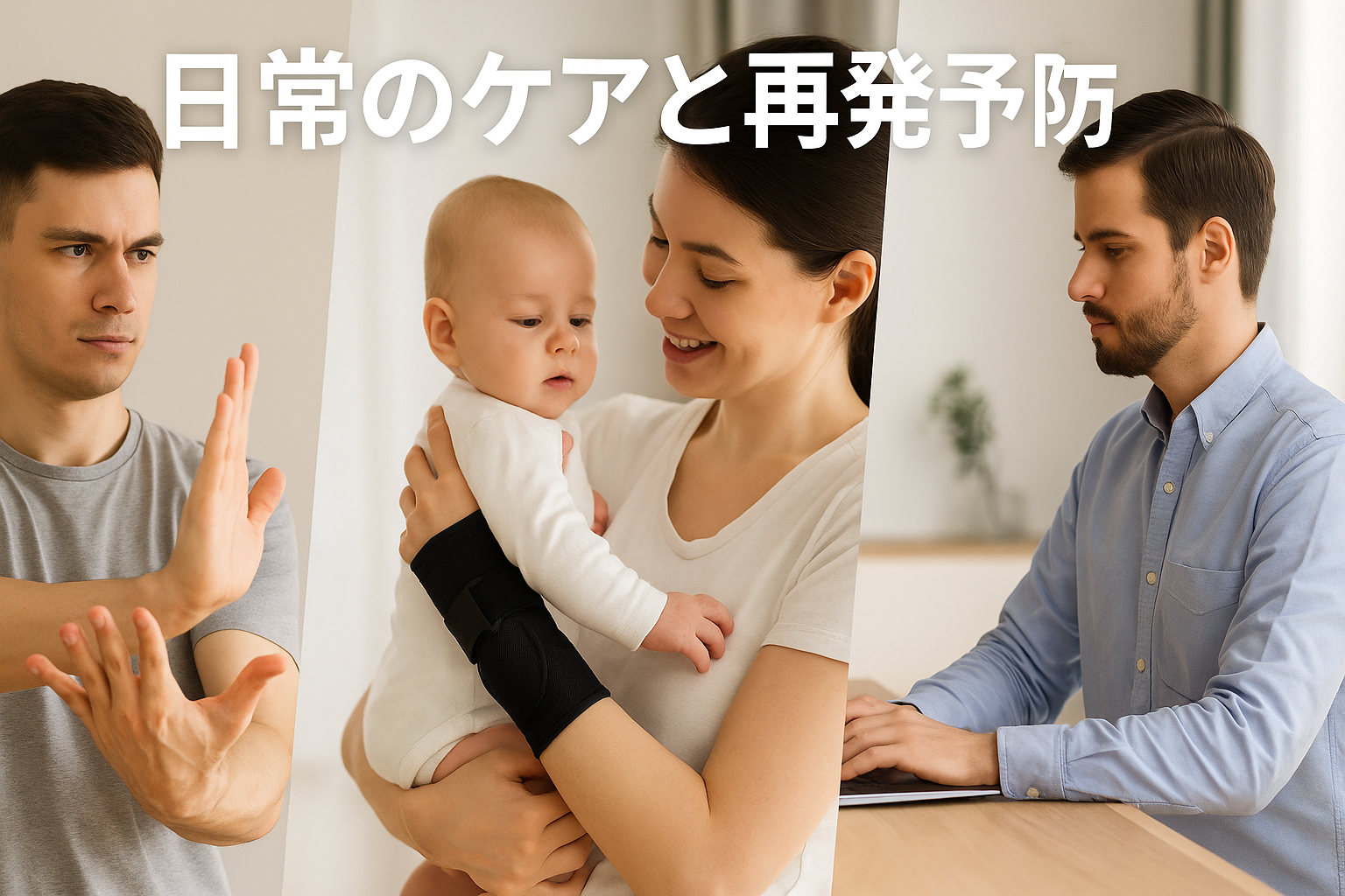 こうしたライフステージでは、「抱っこ時間を左右交替にする」「授乳時の手首位置を変えてクッションを使う」「趣味の手作業を少し控える」など、動き方を少しだけ変える工夫が再発防止に役立つでしょう。