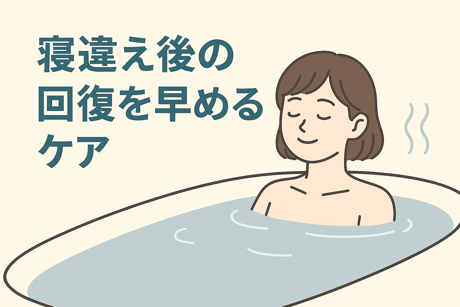 最初の炎症や痛みがだいぶ和らいできたら、今度は血行を促す“温めケア”が役に立つことがあります。湯船にゆっくりつかったり、ぬるめのお湯で軽く首〜肩を温めたりすることで、筋肉の緊張がやわらぎ、こわばりがほぐれやすくなるとされています。