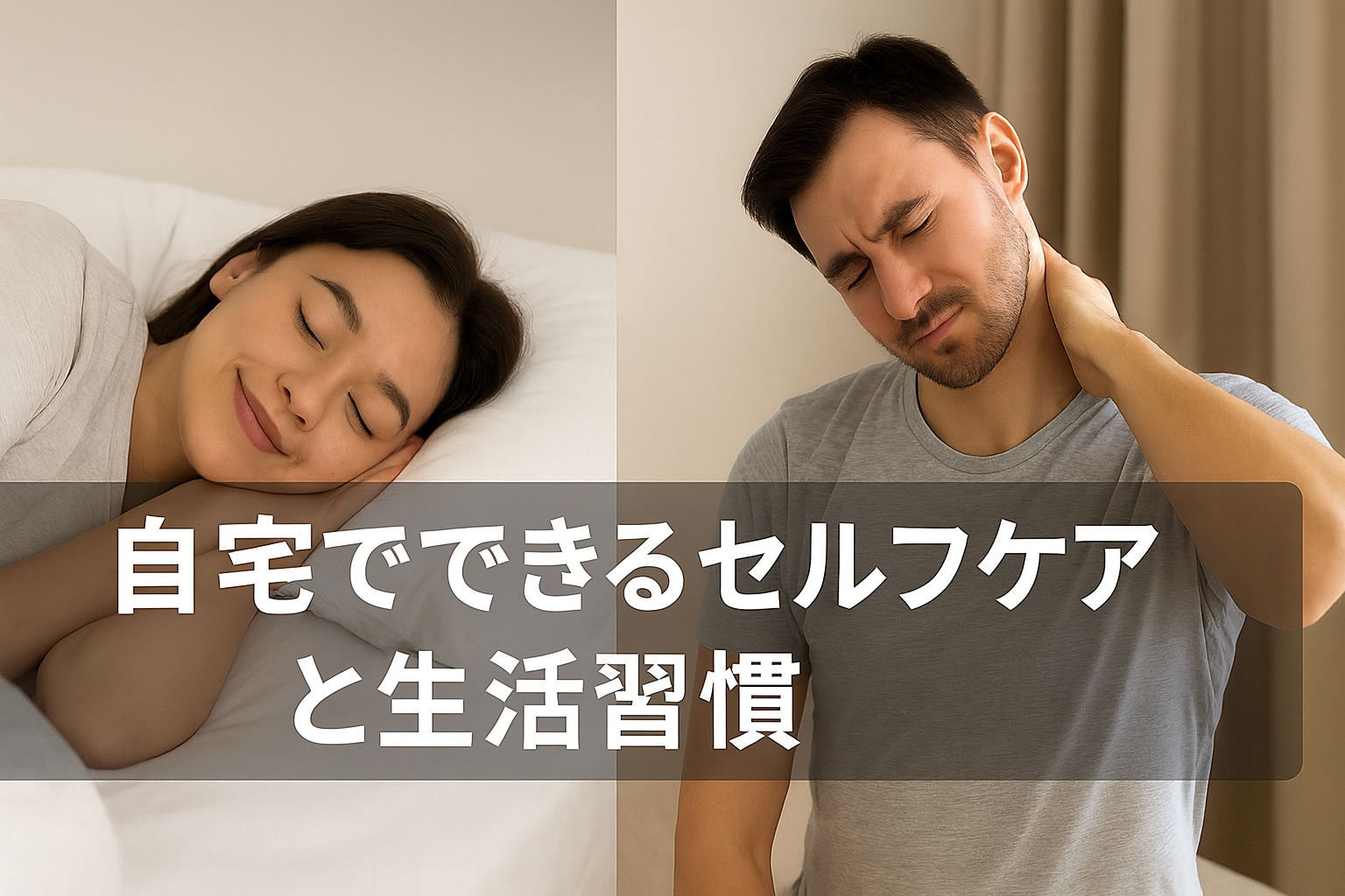 その他にも、長時間同じ姿勢を続けない、寝る姿勢を整える、枕の高さを見直すなど、首にやさしい生活を意識することが、再発予防につながりやすいとされています。
