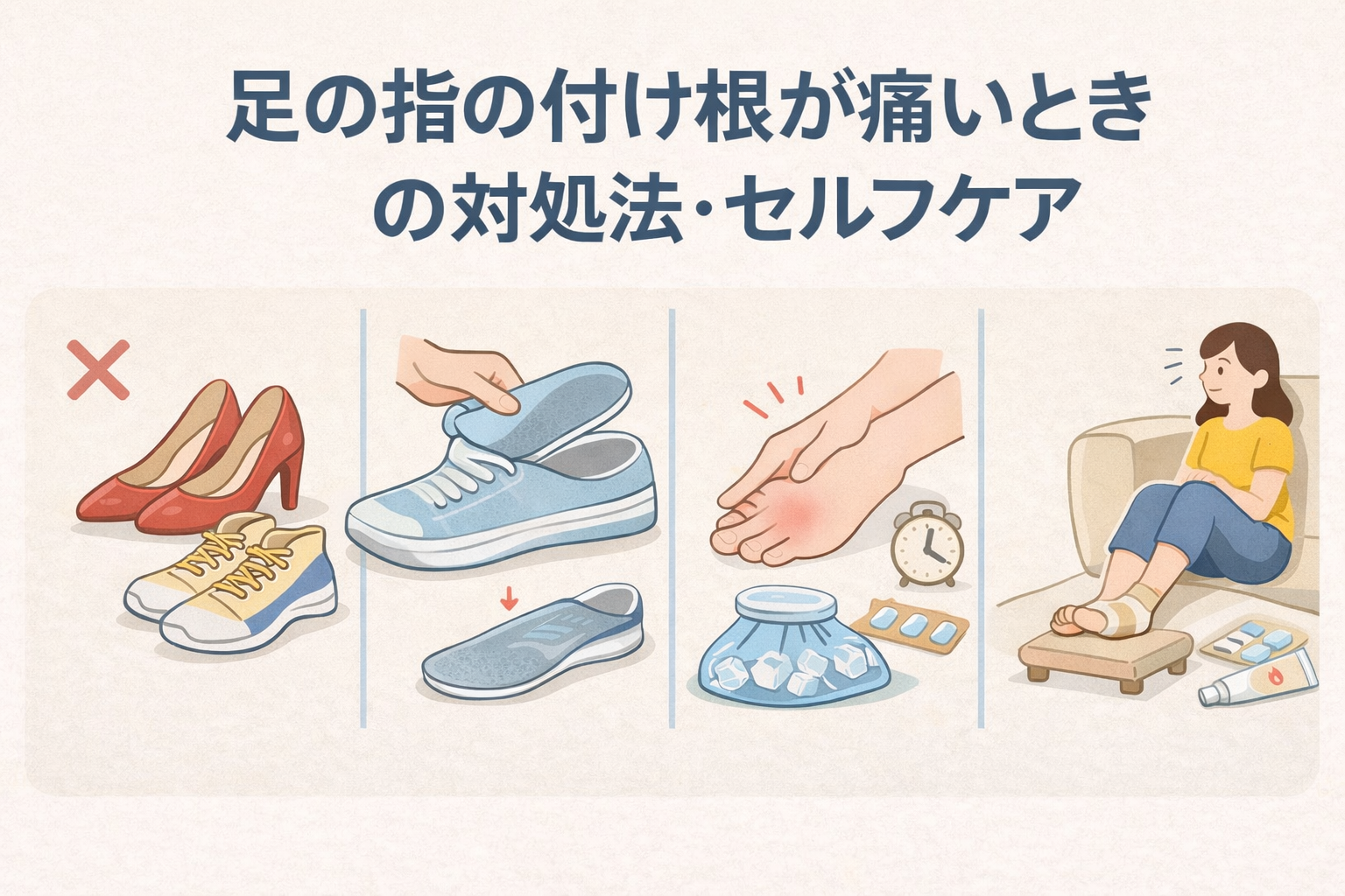 「足の指の付け根が痛い…今すぐ何をしたらいいんだろう?」