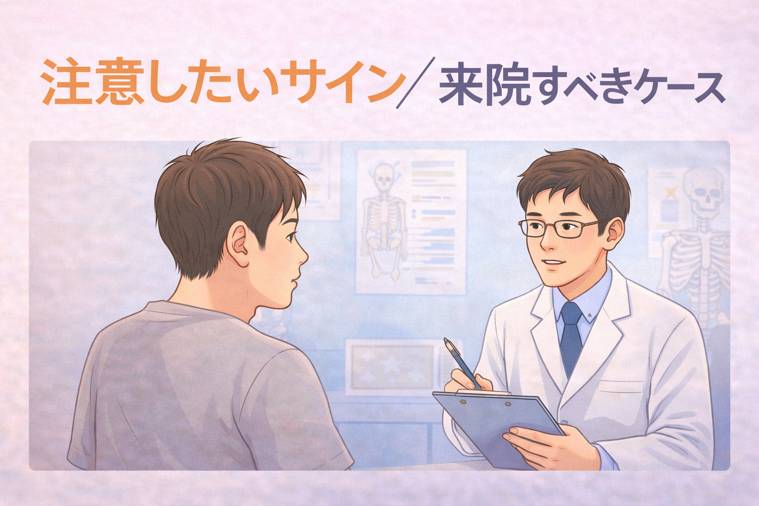 「首だけじゃなく、腕まで変な感じがする…」そんなときは、無理に様子を見続けないほうが良いでしょう。