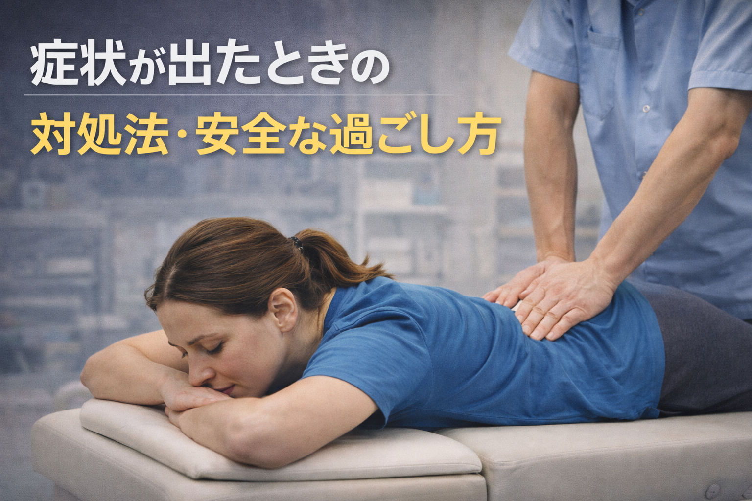 痛みやしびれが続く場合、日常生活に支障が出ているときは、専門機関を受診し体の状態を確認しましょう。