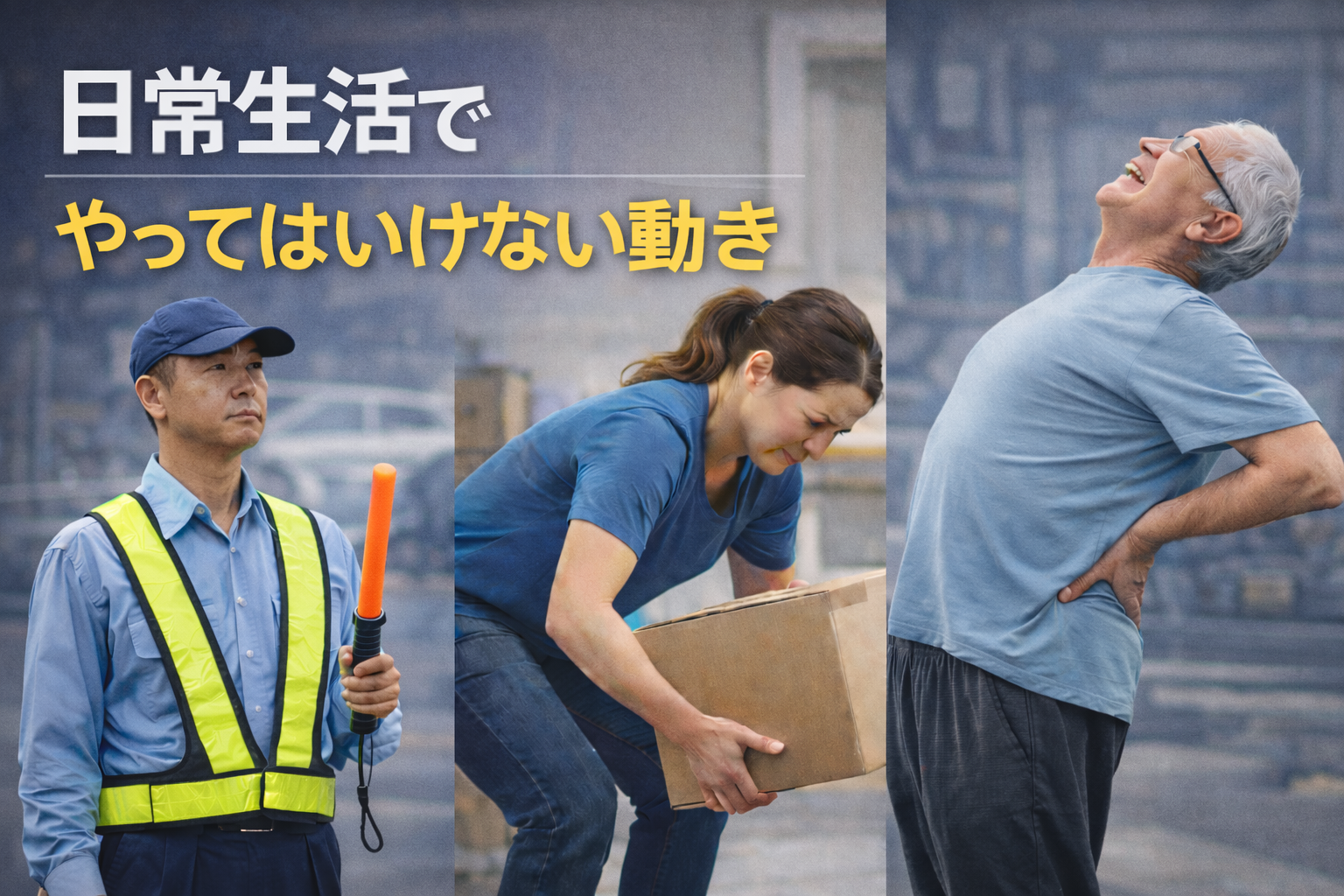 無理に背筋を伸ばしすぎる動作や、重い物を勢いよく持ち上げる行為は、症状が出やすくなると言われています。