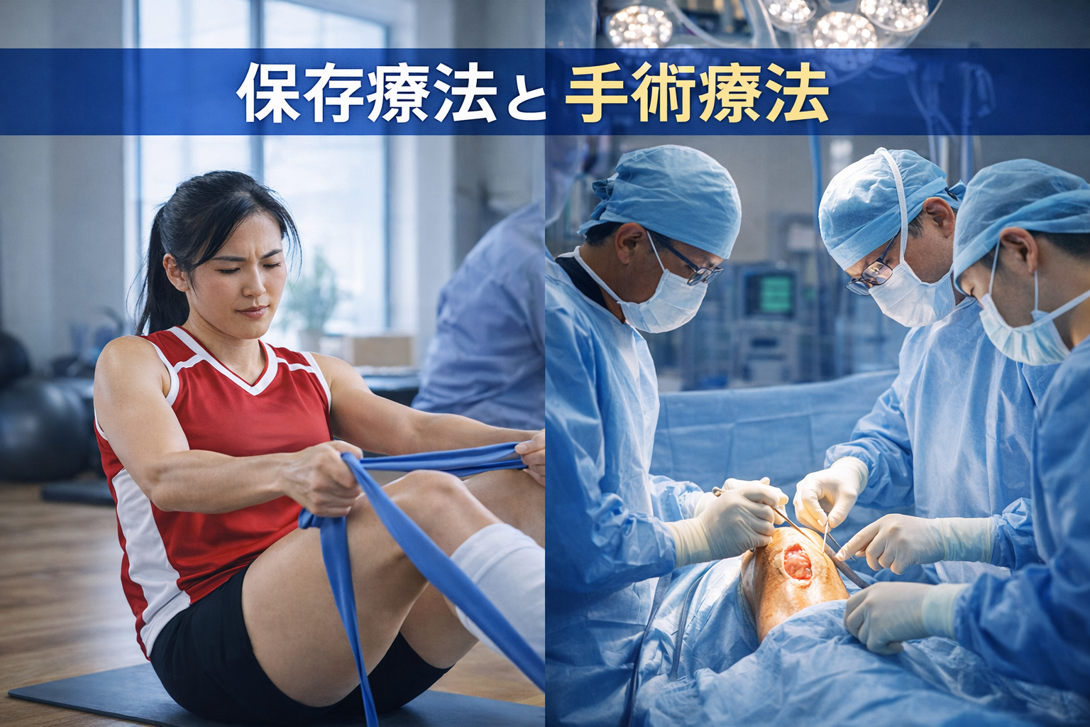 一方で、損傷が大きい場合や、保存的な検査を続けても痛みや引っかかり感が改善しないケースでは、手術が検討されます。