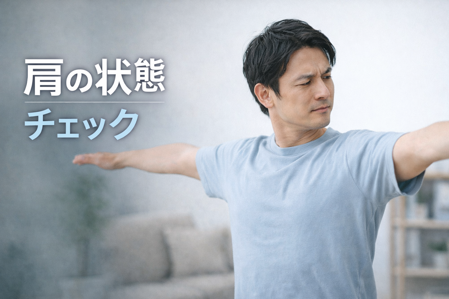肩が張っているときは、まず大きく動かすよりも、ゆっくり伸ばす意識が大切です。