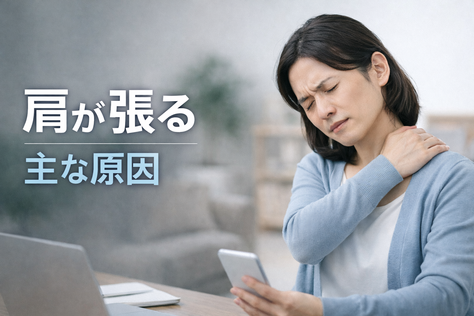 この姿勢が続くと、無意識のうちに肩へ負担がかかり、張りとして感じやすくなるそうです。