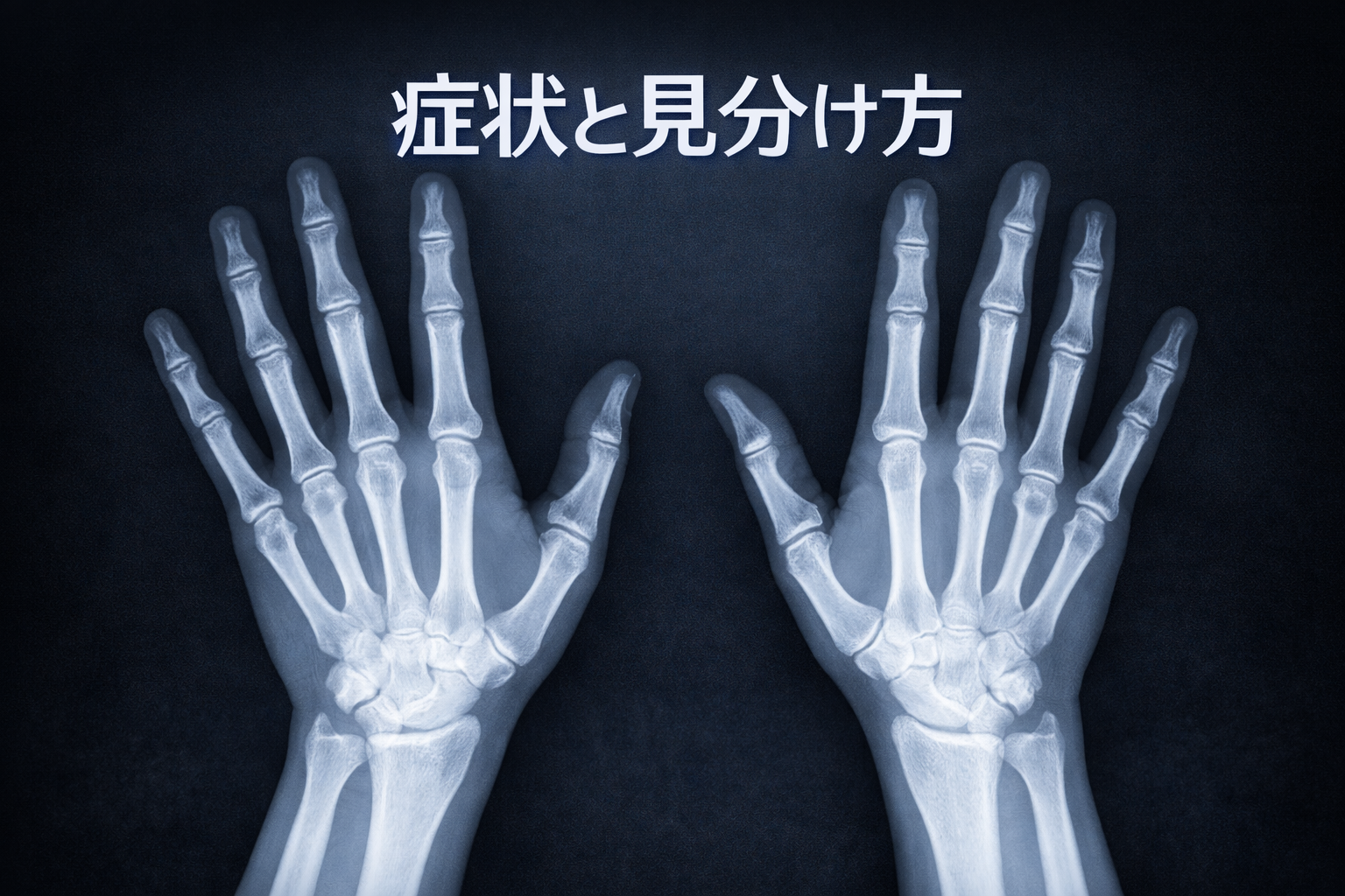 親指の付け根にある関節に負担がかかり続けることで、違和感や痛みが出るのが特徴です。