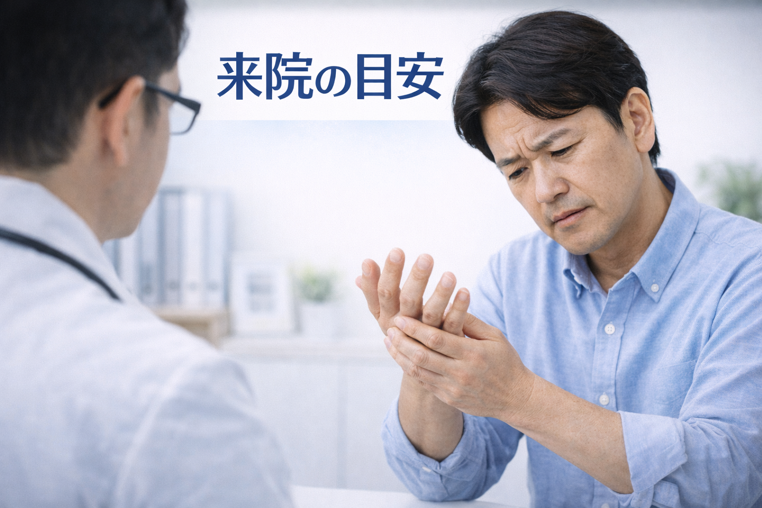 手のひらの痛みは様子見で済む場合もありますが、一定のサインが出ているときは来院を検討した方が良いでしょう。