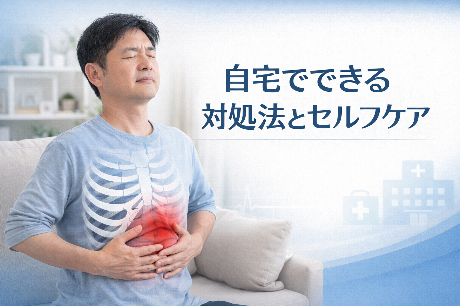 座るときや立つときに背筋を軽く伸ばし、浅くなりがちな呼吸をゆっくり整えることで、違和感の軽減につながる場合もあります。