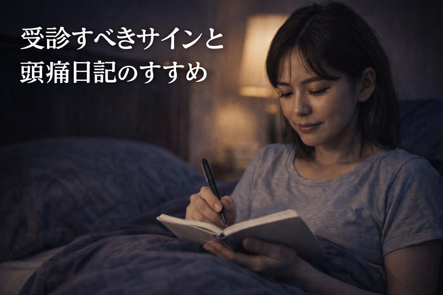 頭が痛すぎて寝れない状態を放置せず、記録し、必要なら来院を検討する。