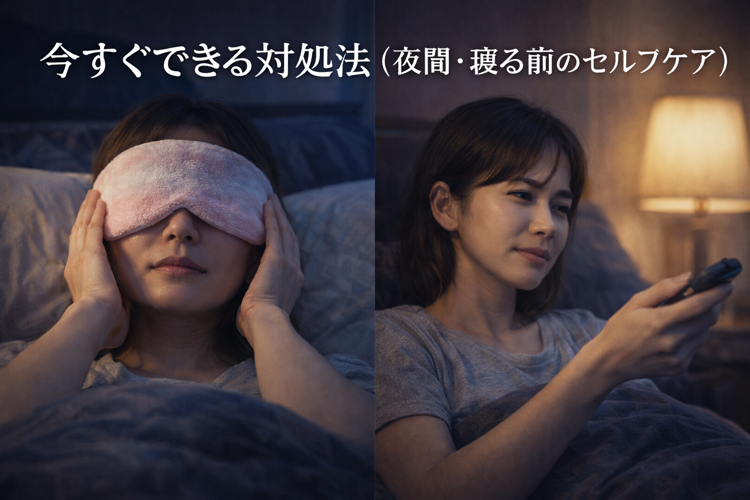 そんなときは、まず刺激を減らすことが大切だと言われています。夜間は体が回復モードに入る時間帯ですが、光や音の刺激が強いと神経が興奮しやすいそうです。できることから整えていきましょう。