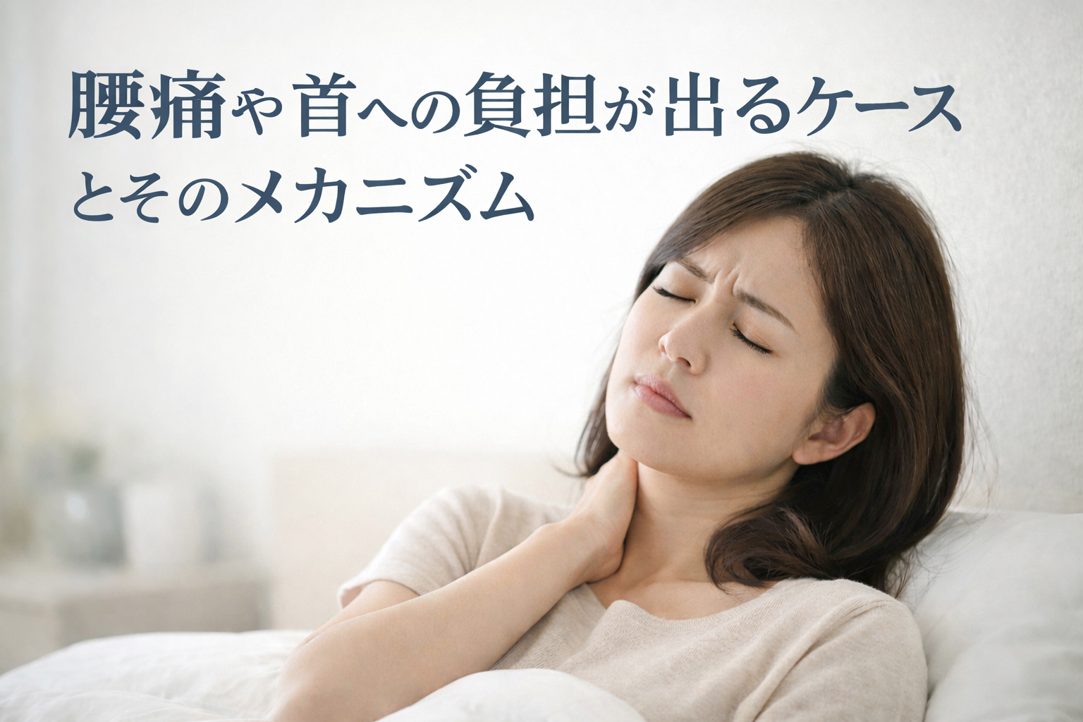 そんなときは、寝方よりも“体の状態と寝具の組み合わせ”を見直す視点が大切です。仰向け自体が悪いと決めつけるのではなく、どんな体の条件で負担が出やすいのかを理解することが重要です。