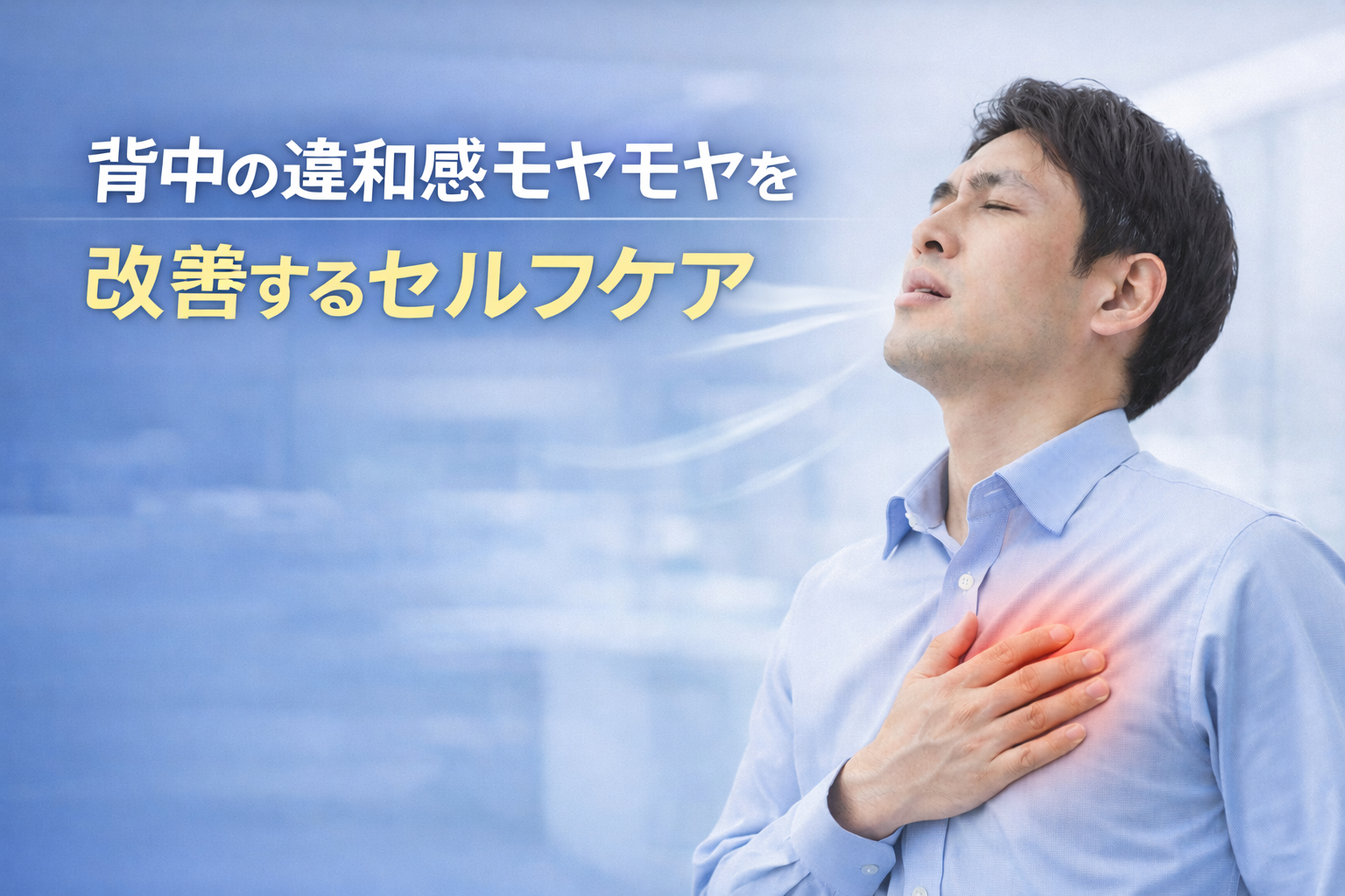 こうした状態が続くと、背中や肩甲骨周辺の筋肉が緊張しやすくなり、モヤモヤした違和感として感じる場合があることもあるでしょう。