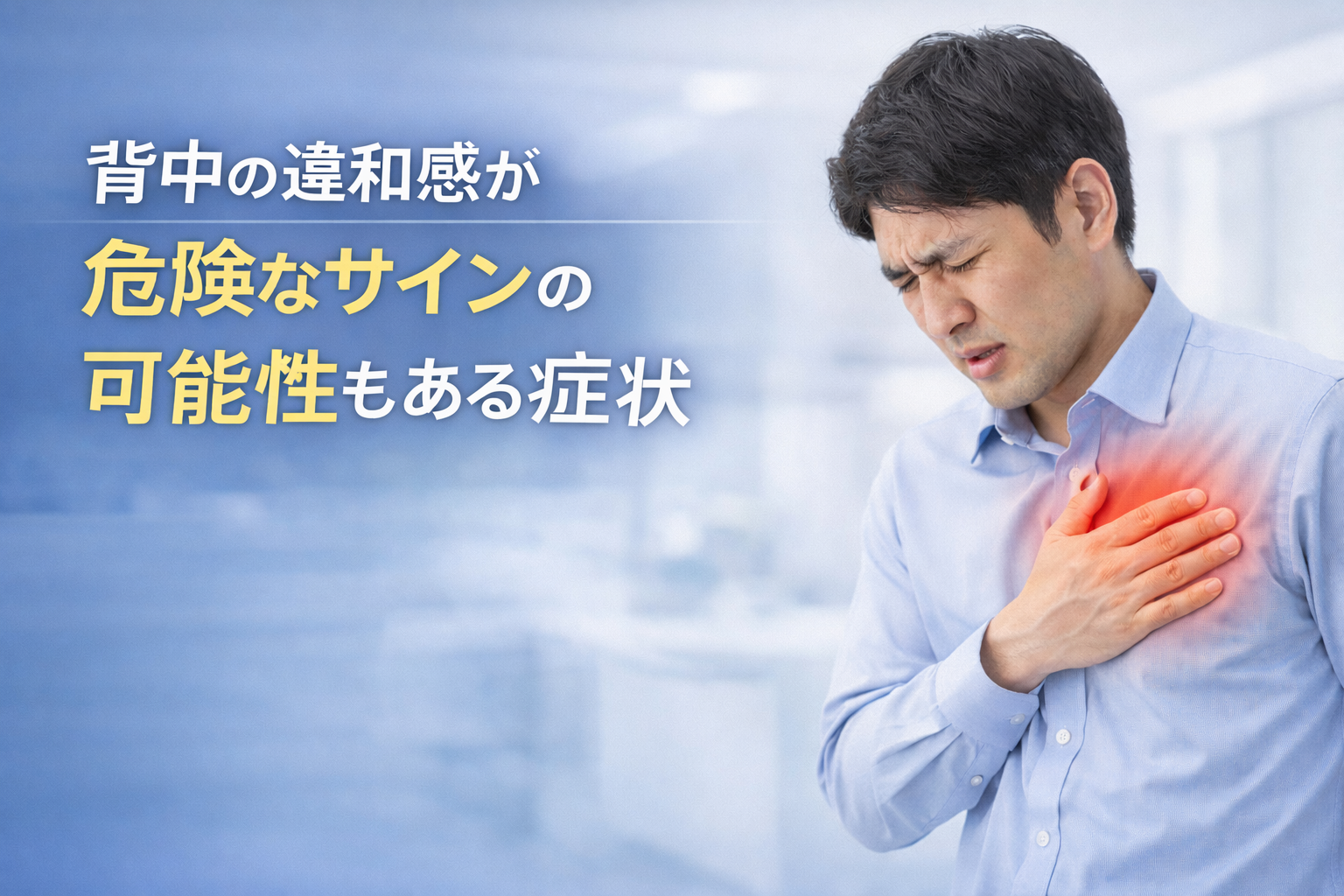 背中の違和感とあわせて胸の痛みや息苦しさを感じる場合は、特に注意が必要と言われています。