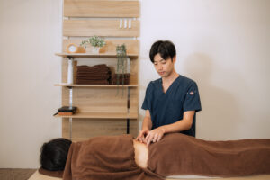 当院では、慢性上咽頭炎でお困りの方に対し、首・肩まわりのコリを鍼でゆるめる施術を行っています。